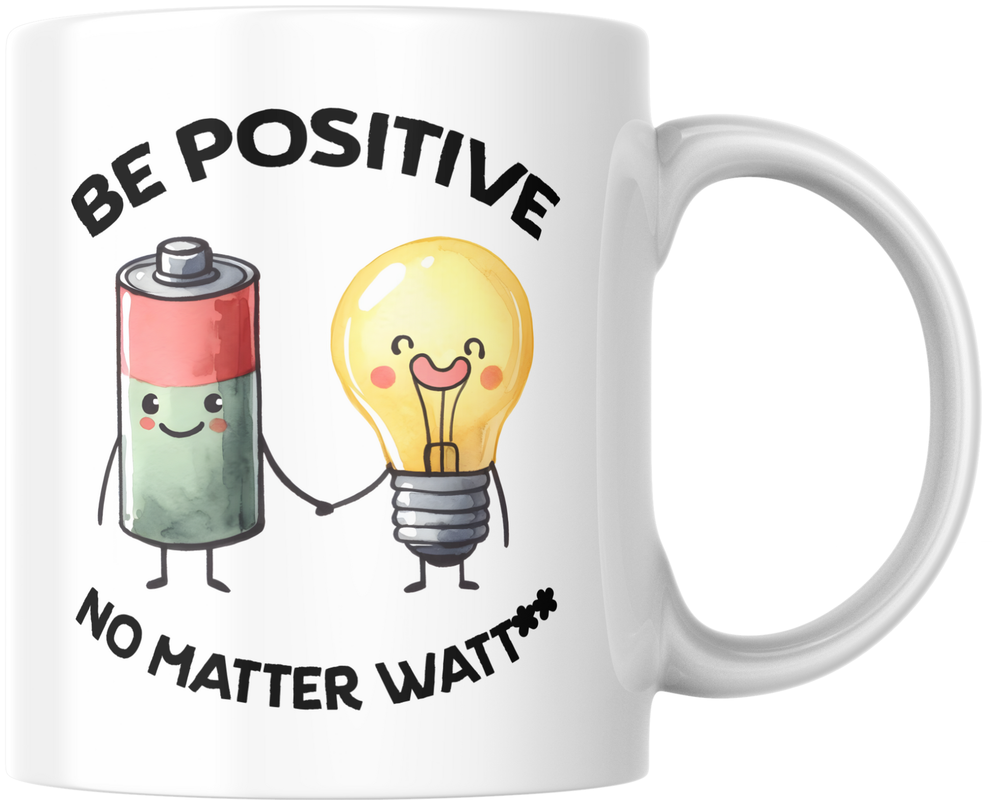 Klein stroompje positiviteit bij elke slok! Deze humoristische mok toont een lieve batterij en gloeilamp hand in hand met de tekst “Be Positive — No Matter Watt”. Ideaal voor elektriciens, technici, STEM-liefhebbers en iedereen die wel wat licht én humor kan gebruiken op kantoor of thuis. Stevig, prettig vast te houden en gemaakt voor dagelijks gebruik—van de eerste espresso tot de late-middag latte.