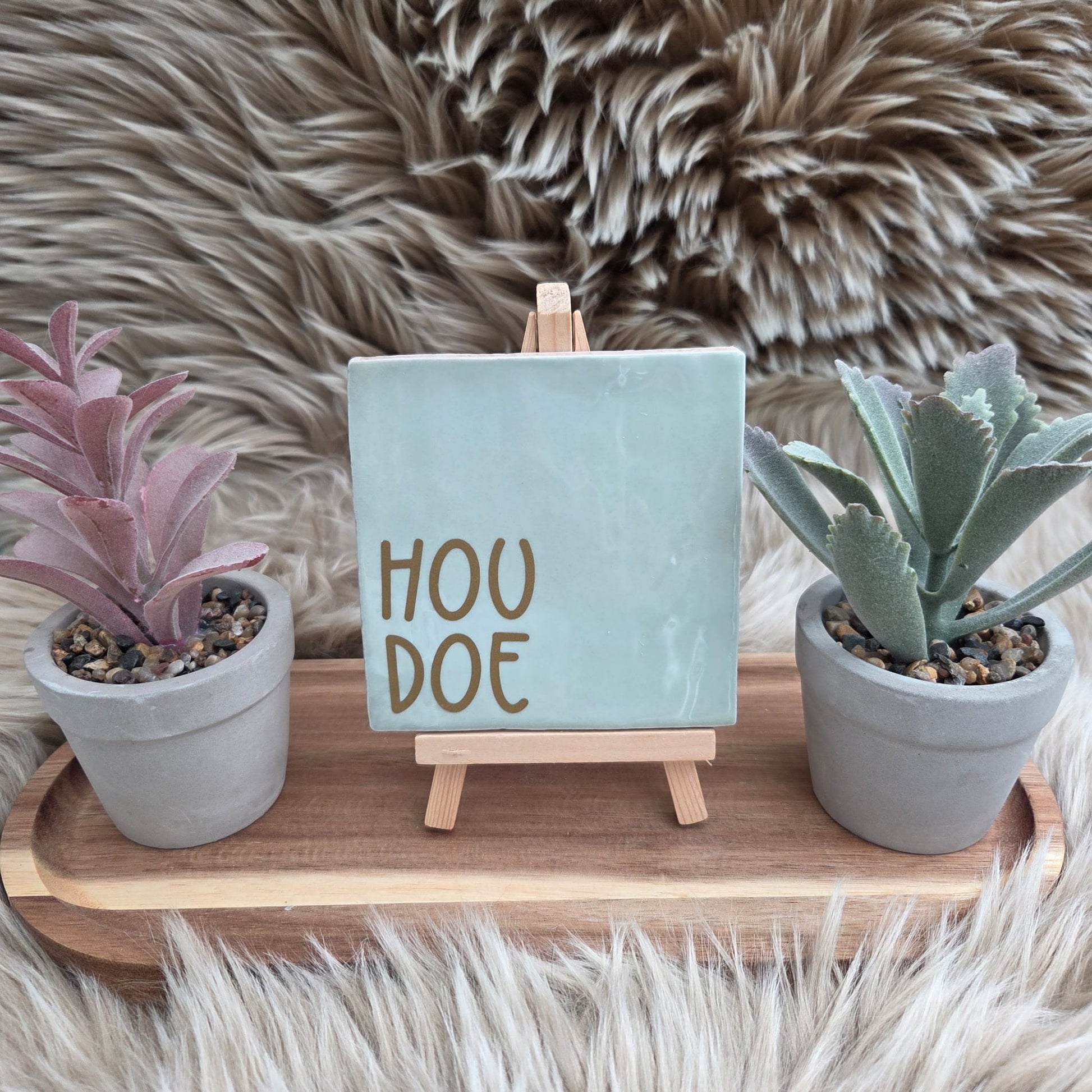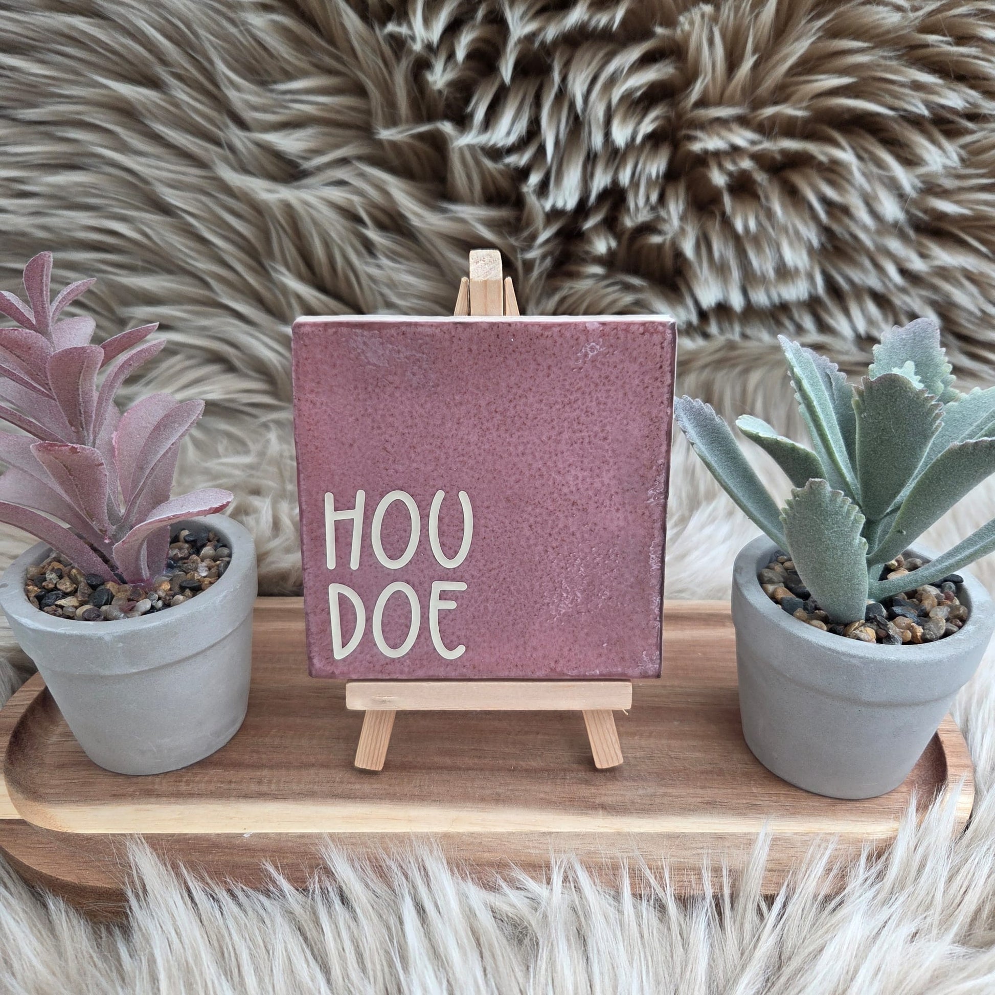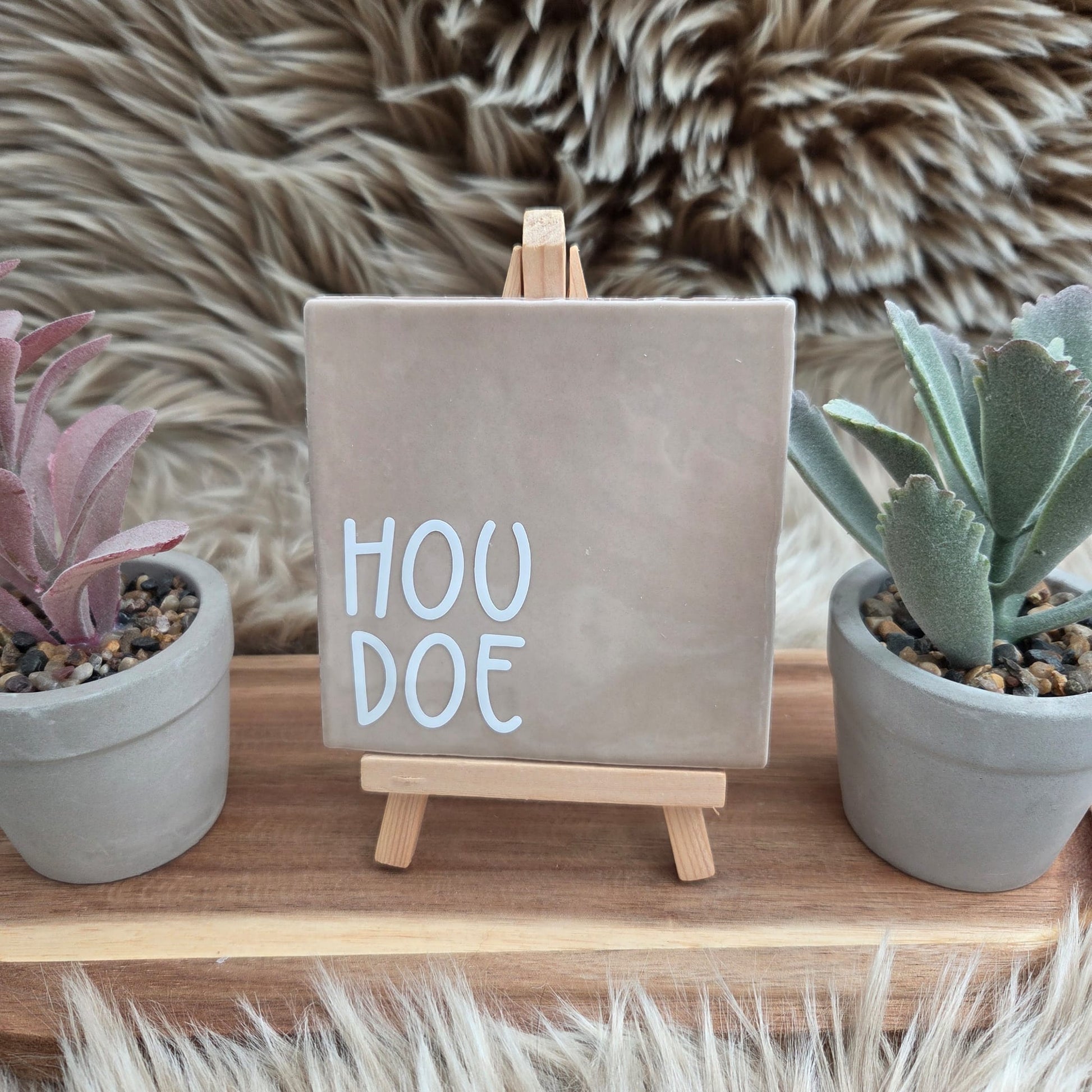 Breng een stukje Brabantse gezelligheid in huis met dit robuuste keramische tegeltje met de tekst “Houdoe”.