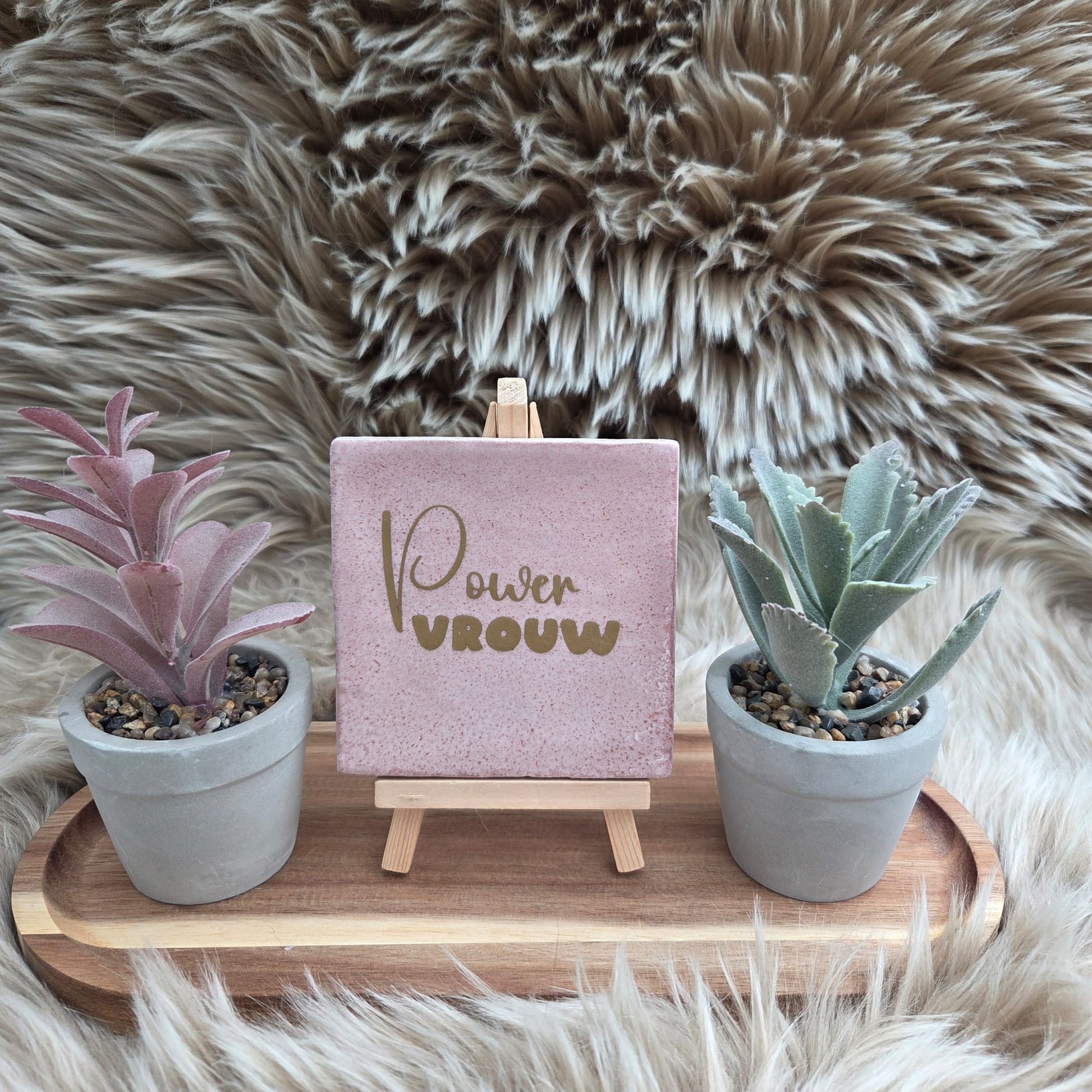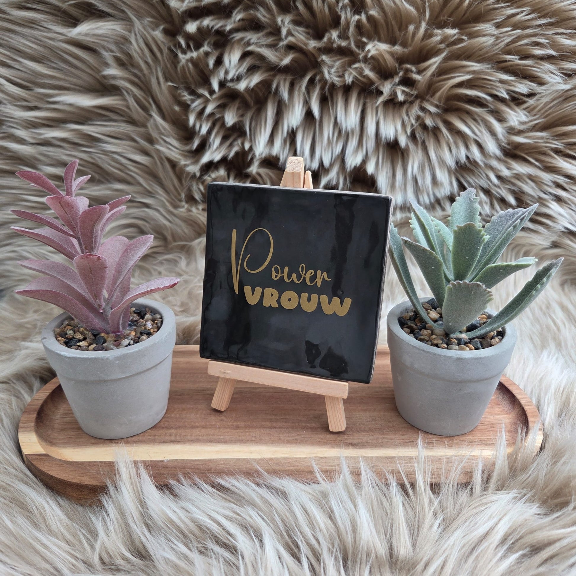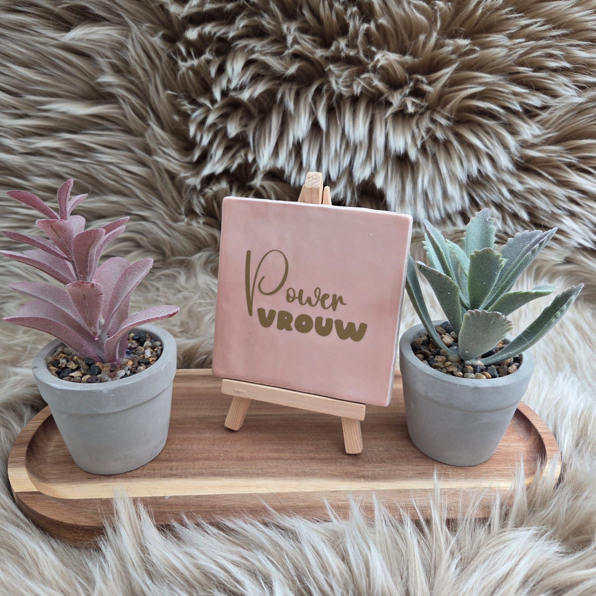 Deze stijlvolle robuuste tegel met de tekst Powervrouw is het ideale cadeau voor elke vrouw die kracht, lef en positiviteit uitstraalt.