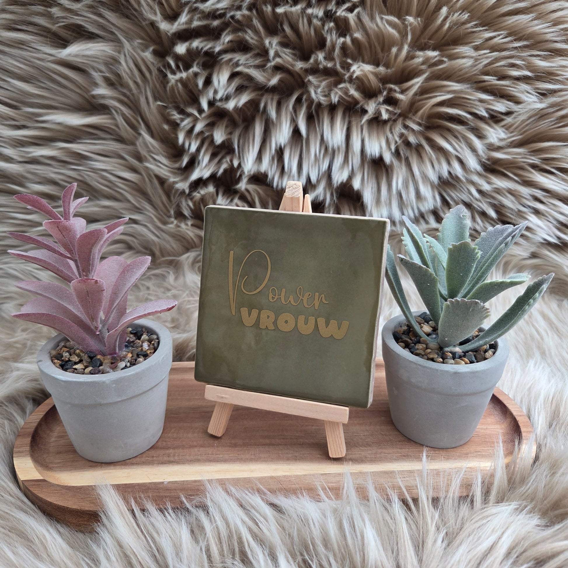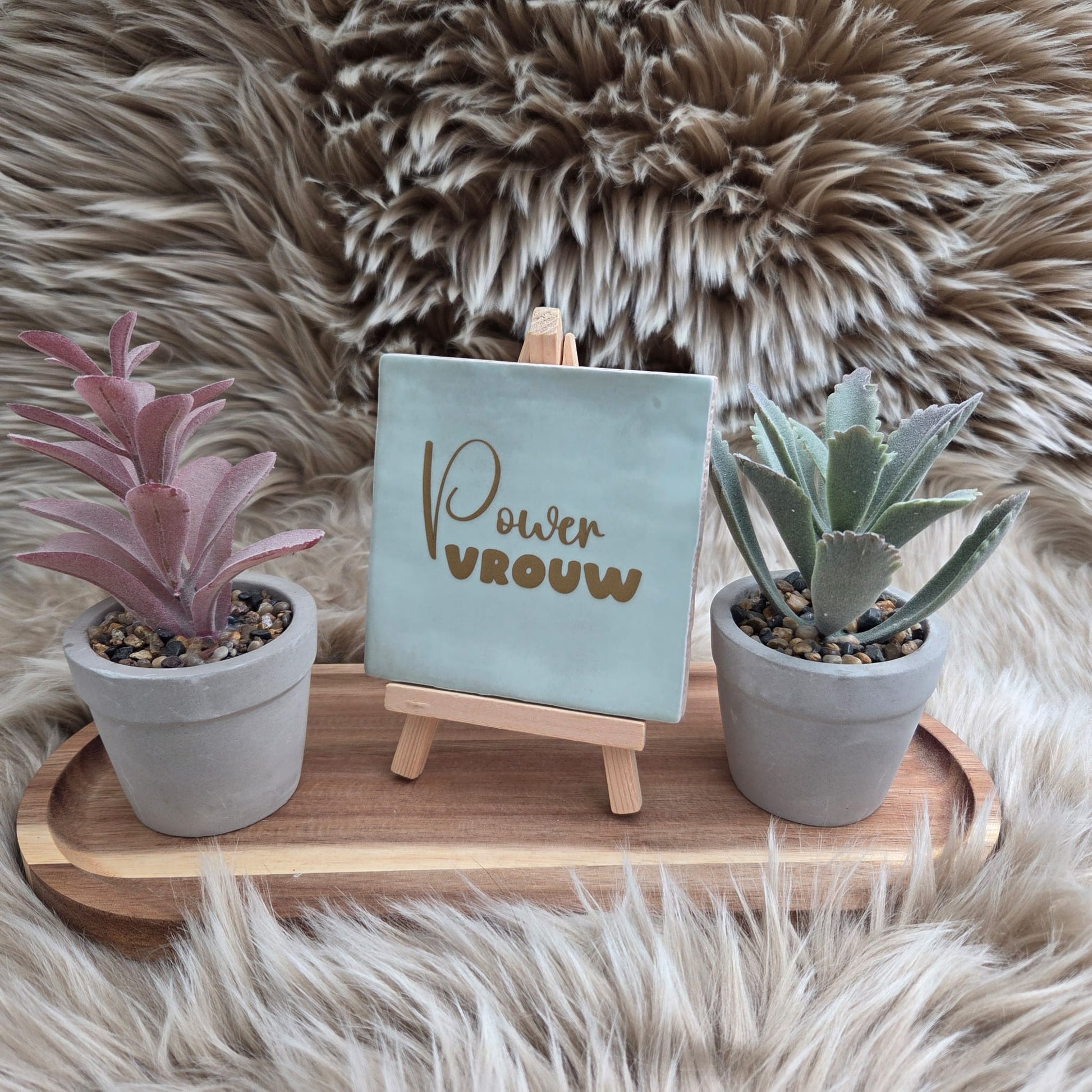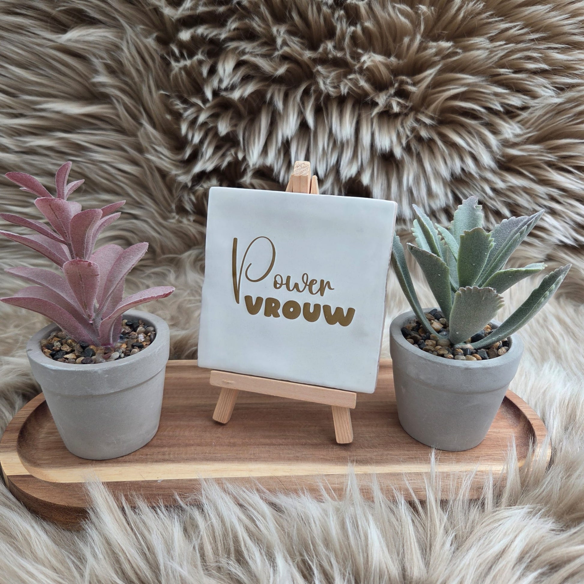 Deze stijlvolle robuuste tegel met de tekst Powervrouw is het ideale cadeau voor elke vrouw die kracht, lef en positiviteit uitstraalt.