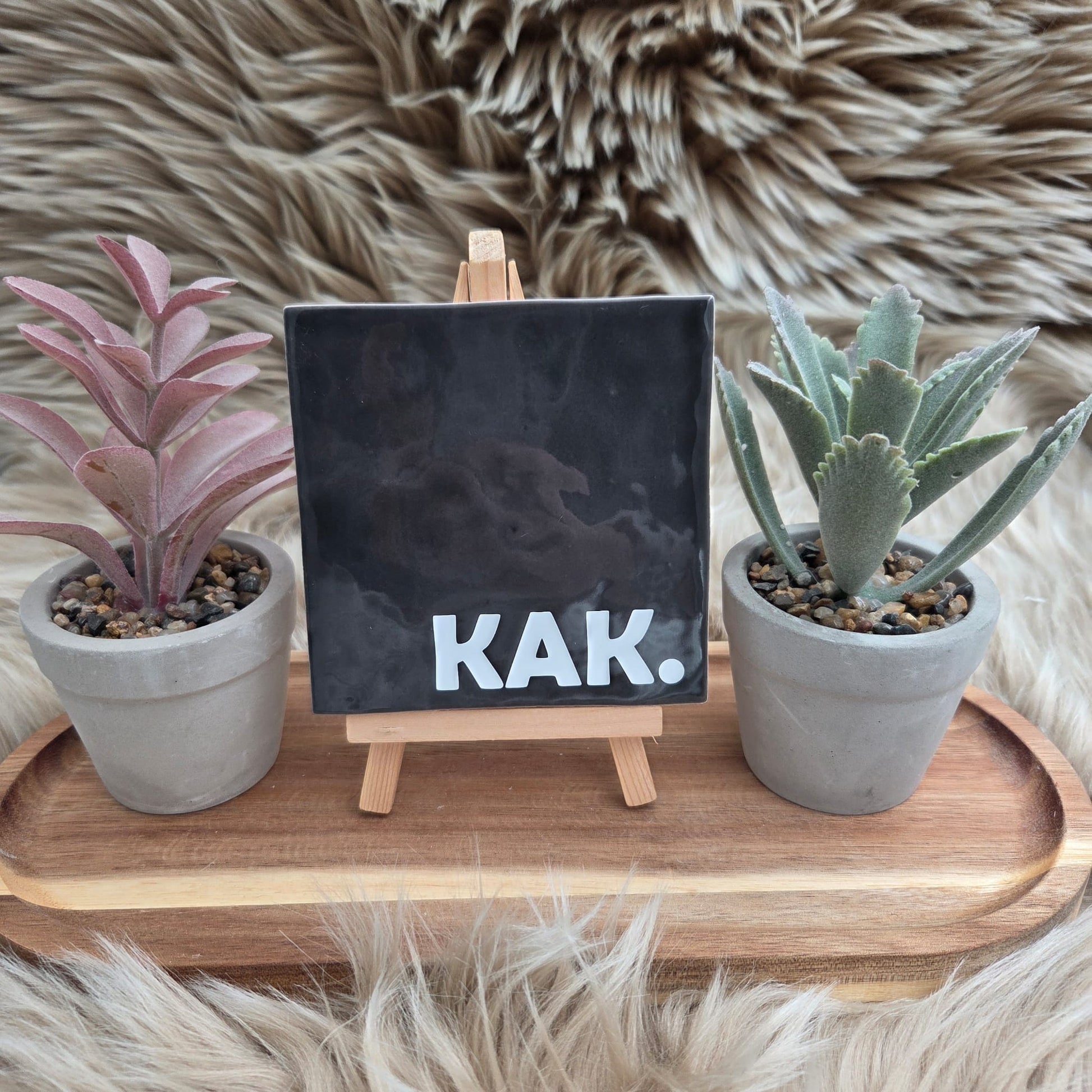 Dit robuuste keramieken tegeltje met tekst “Kak.” is de perfecte mix van humor en stijl. Of het nu een frustratie is, een kleine tegenslag of gewoon even zo’n dag – dit tegeltje vangt het gevoel met één woord.