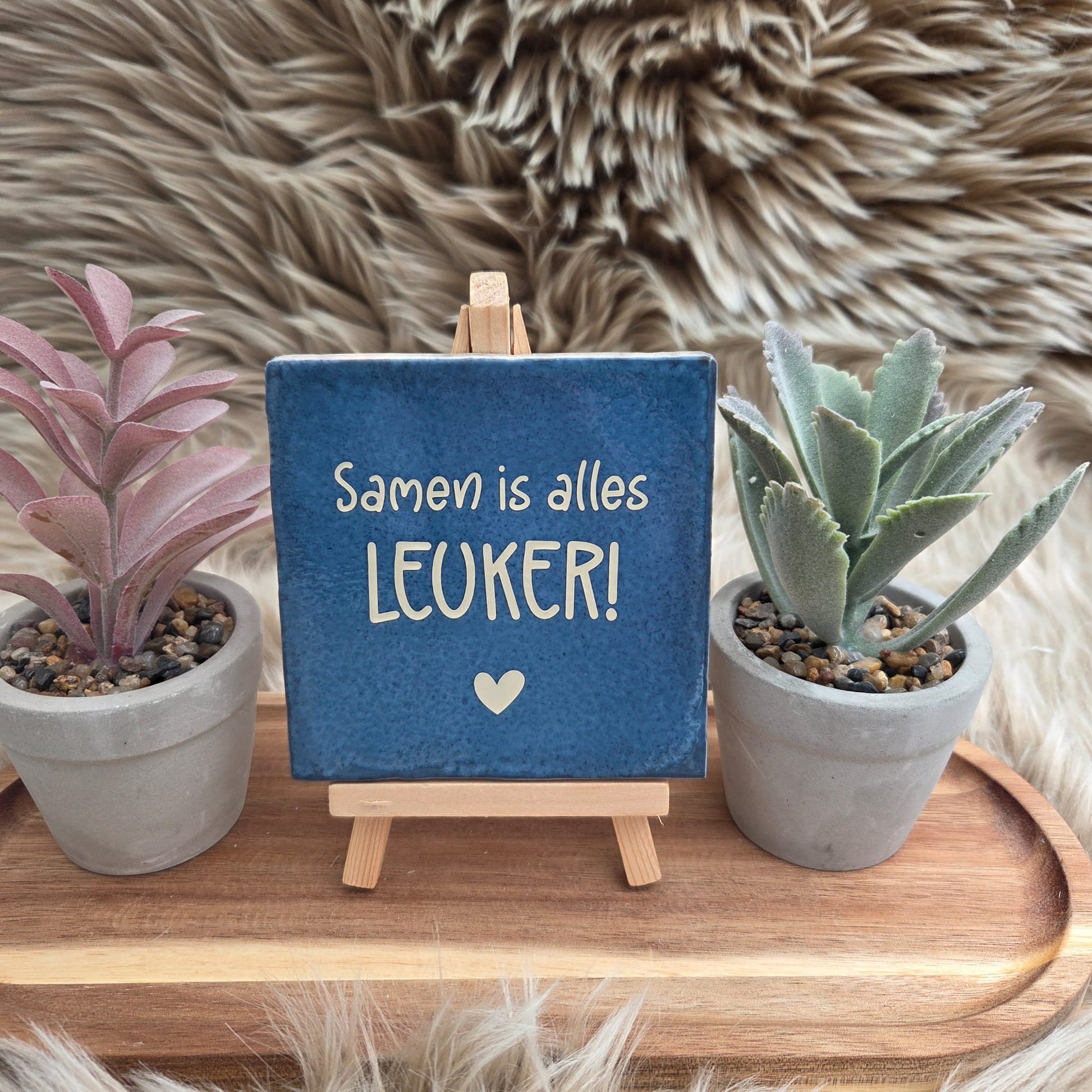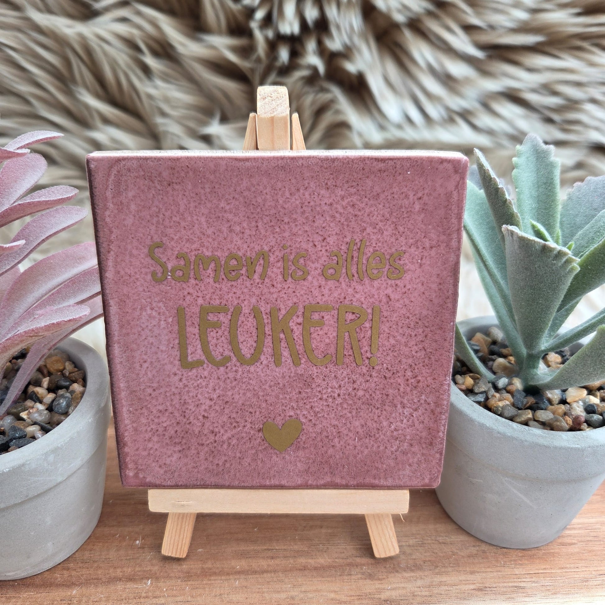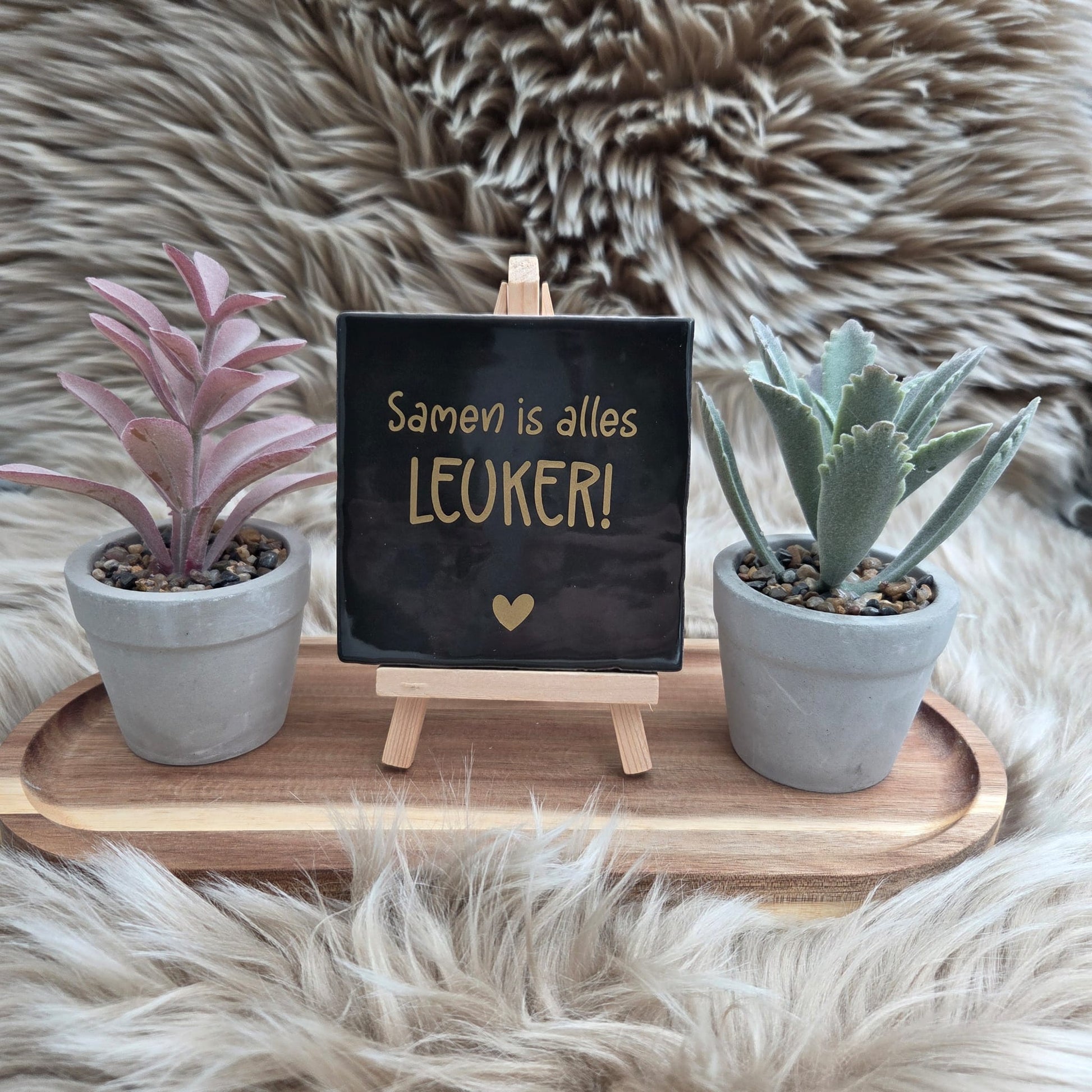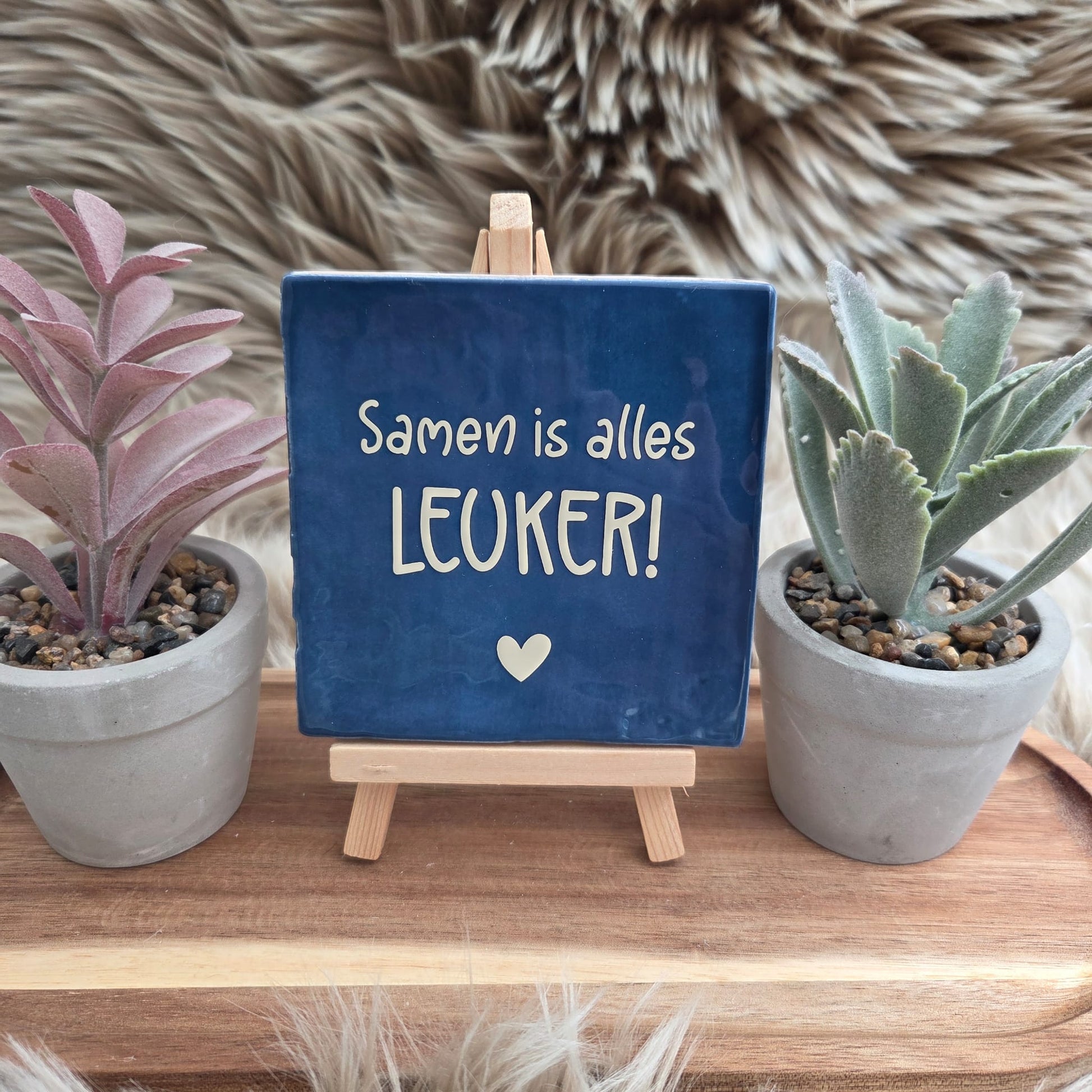 Het tegeltje heeft een stijlvolle afwerking met een subtiel hartje, waardoor het een echte blikvanger is in elk interieur.