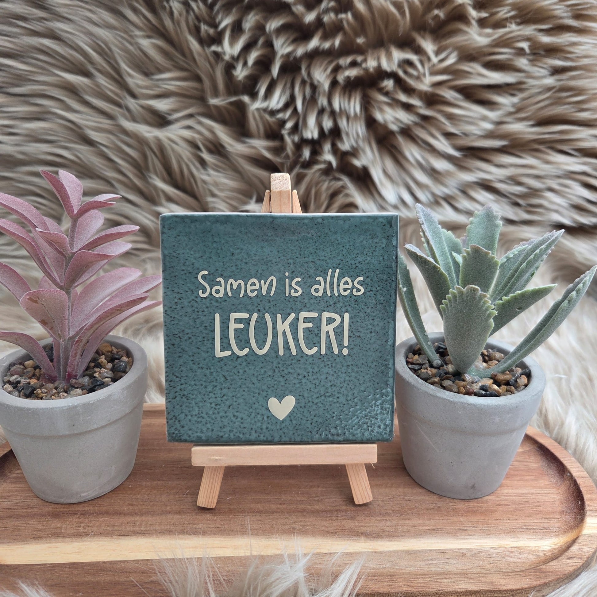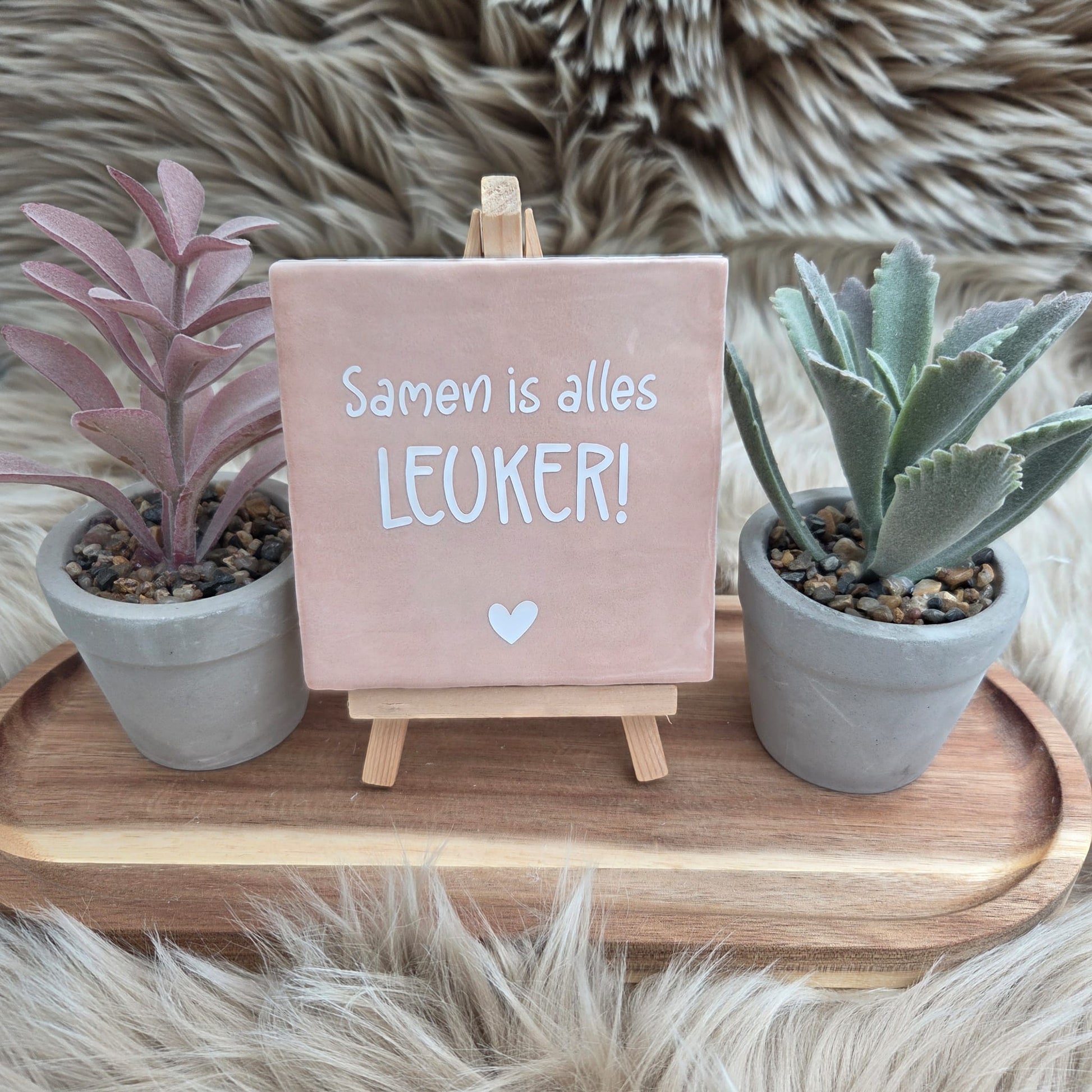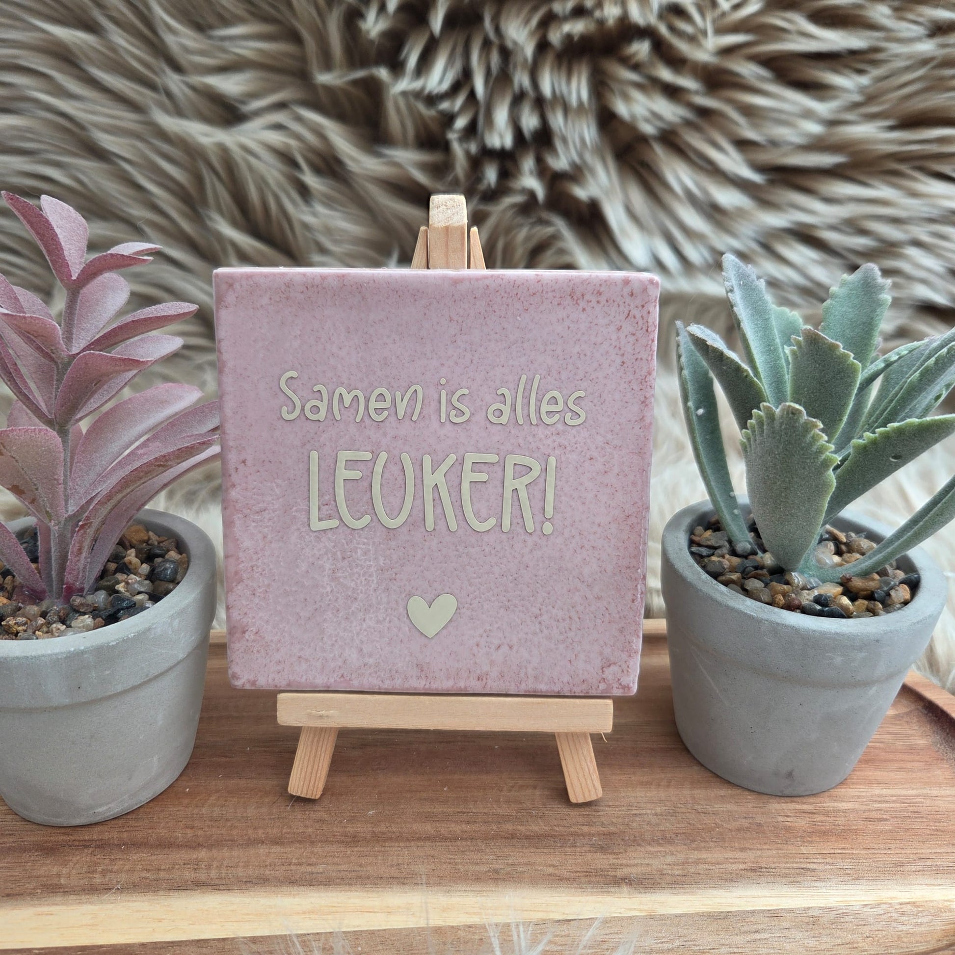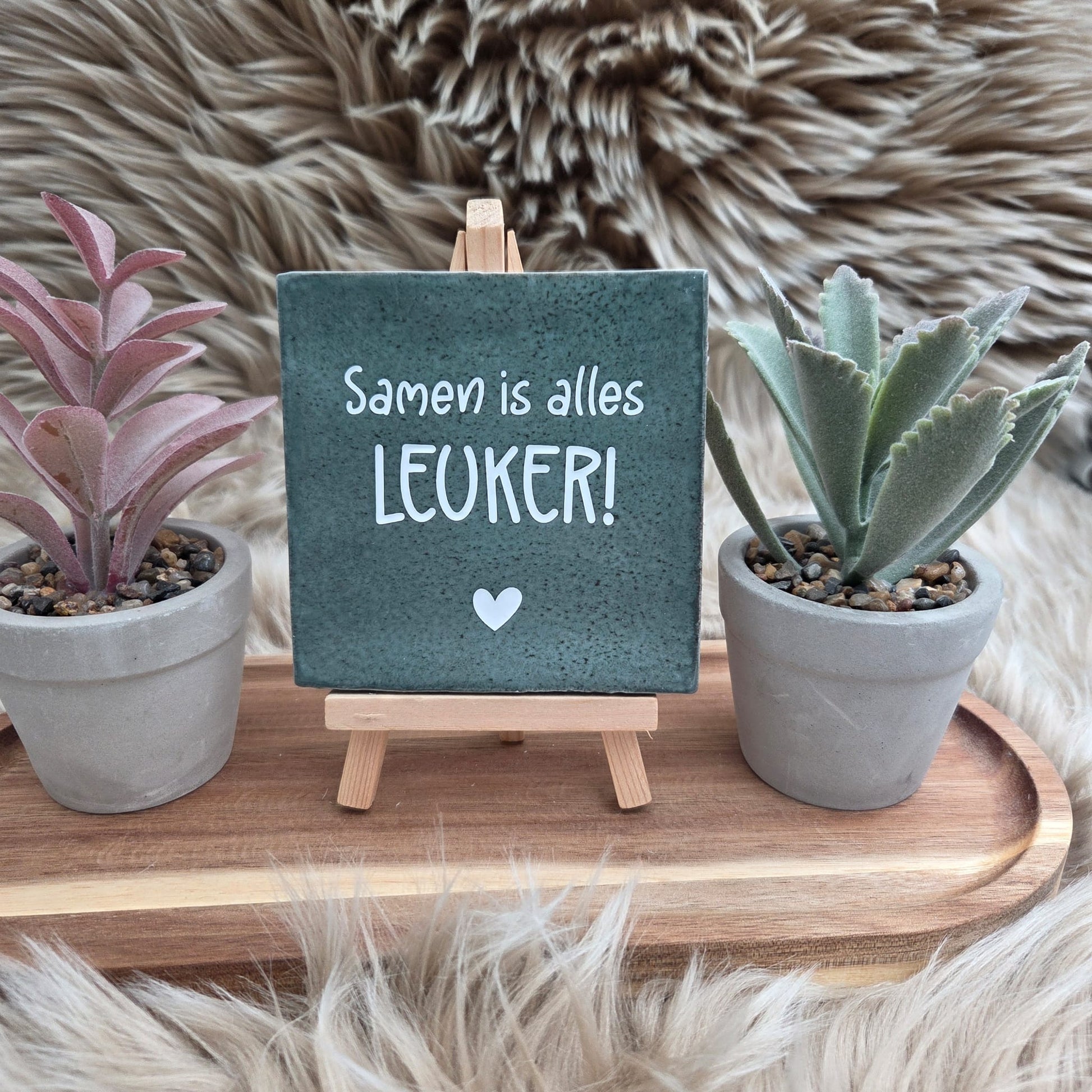 Het tegeltje heeft een stijlvolle afwerking met een subtiel hartje, waardoor het een echte blikvanger is in elk interieur.