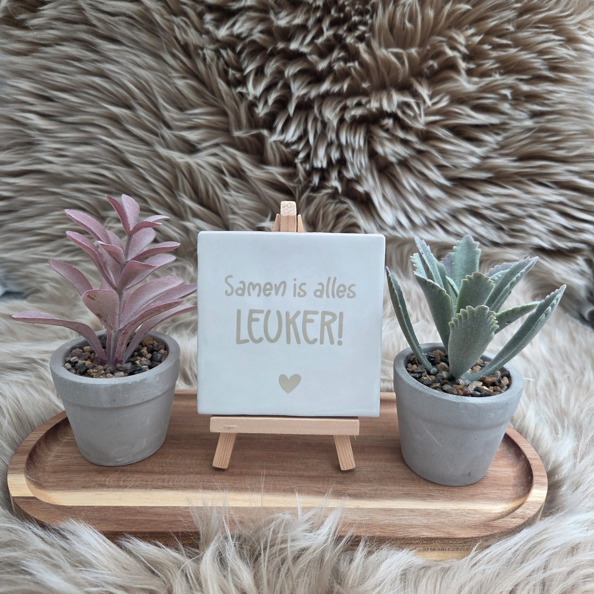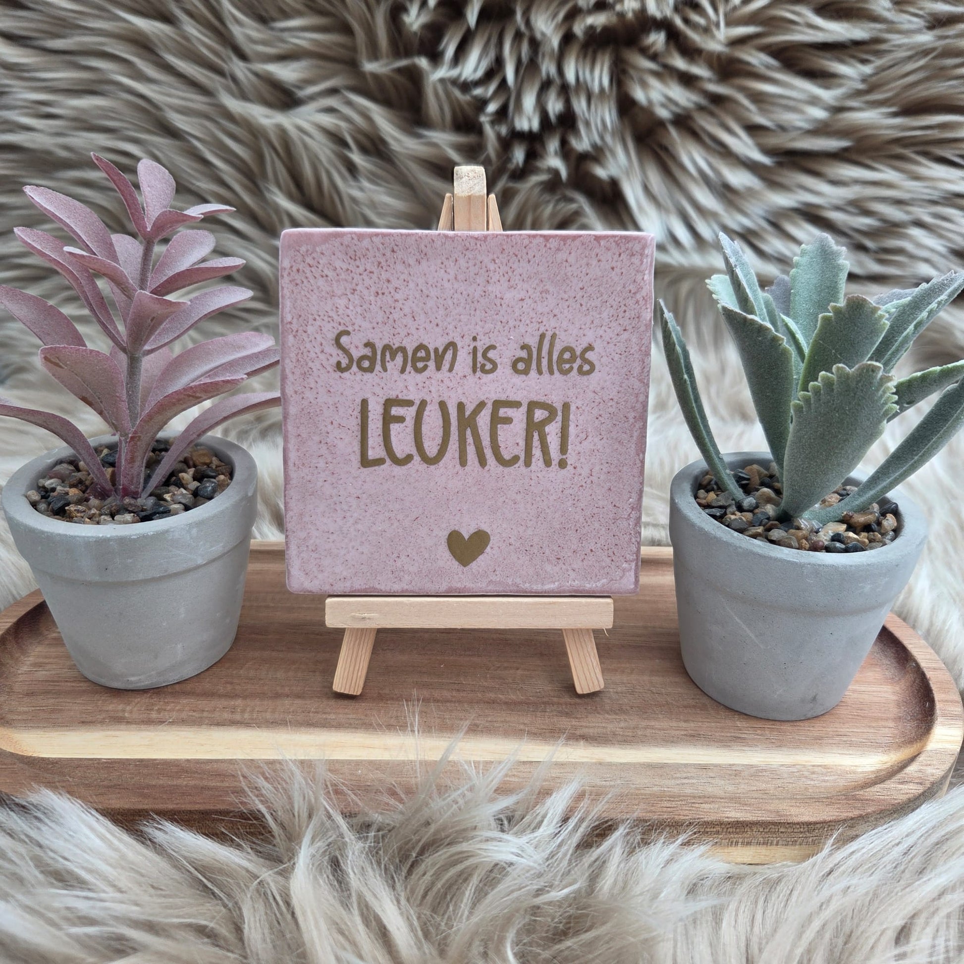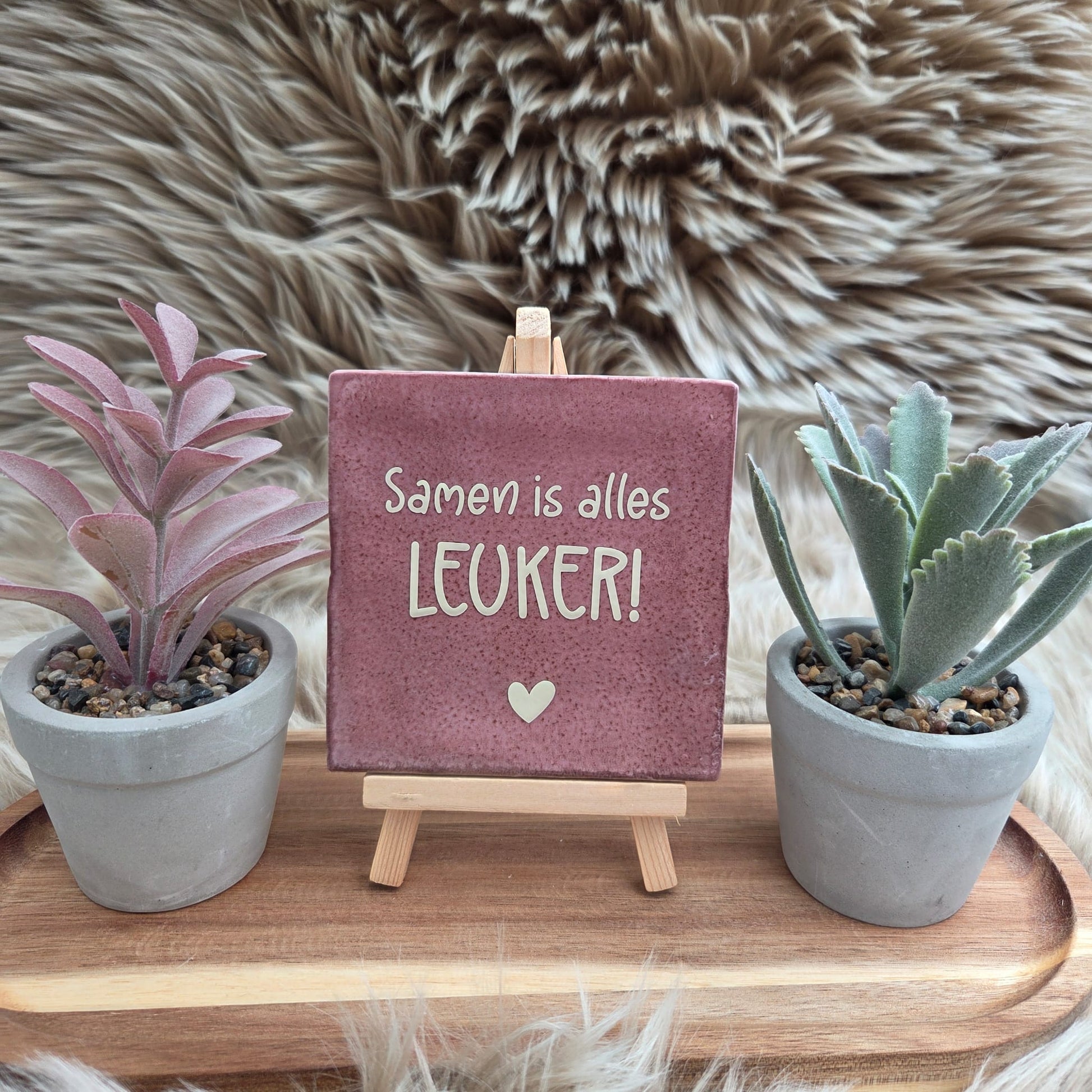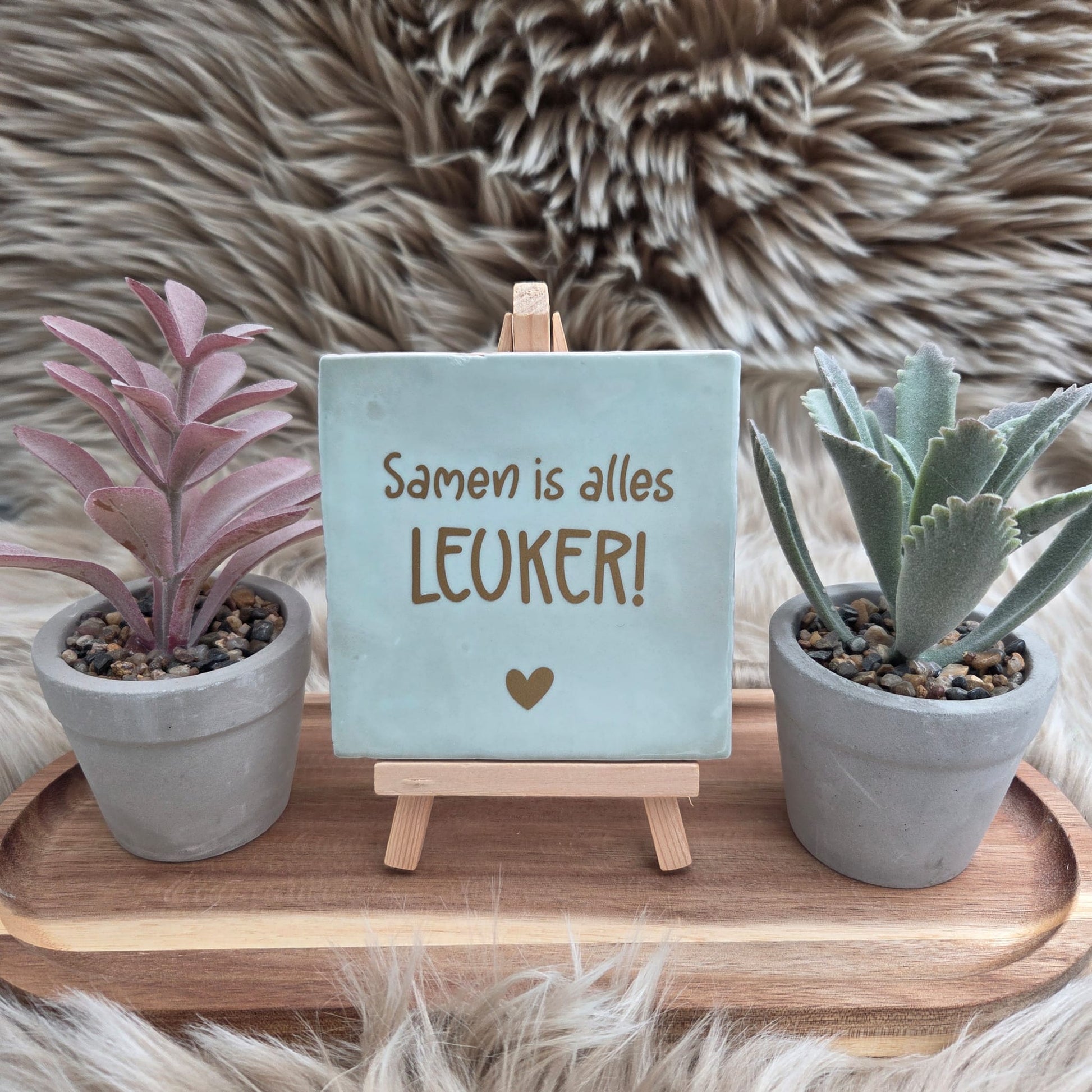 Het tegeltje heeft een stijlvolle afwerking met een subtiel hartje, waardoor het een echte blikvanger is in elk interieur.